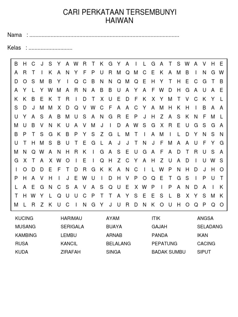 Cari Perkataan Tersembunyi Haiwan Pdf